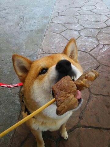 さくらちゃん、大きなお肉にかぶりついていますね~ ド-ナツ食べているときもお肉を食べているときも幸せそう・・・帰省の時にはいいこといっぱいですね