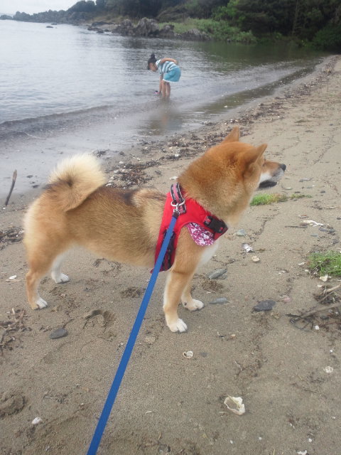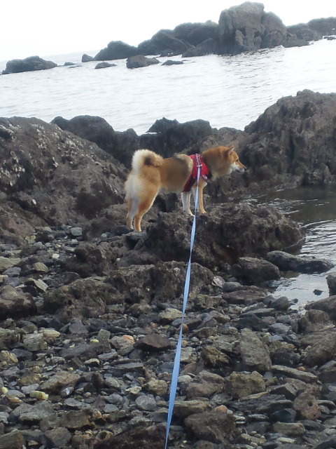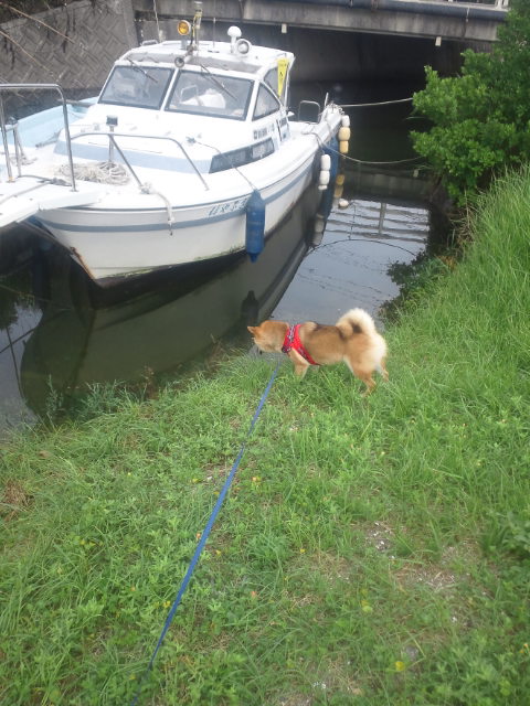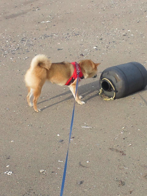 妖しい壺が流れついていたので、柴犬さくらは、必死にチェックチェック。