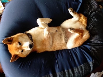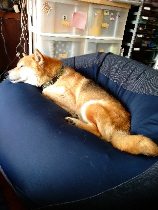 さくらちゃん、クッションの上で気持ちいい寝姿が、なんて可愛いんだろう。だけど、どこか笑ってしまう。