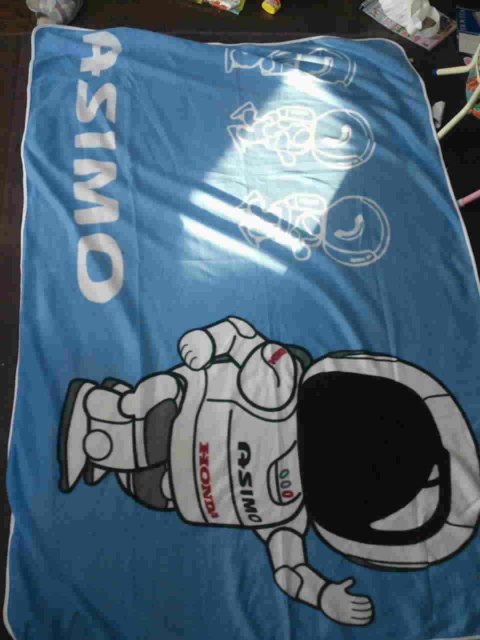 で、帰りに福引きしてから、お待ちかねの来店プレゼントの「ASIMOビッグフリースブランケット」をゲットです!