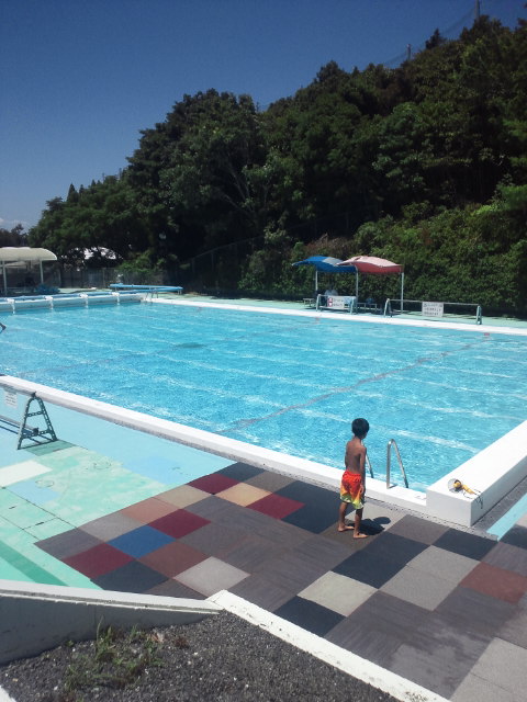 25mプールに入れない息子は、水深70cmの子供プールくらいしか入れません。