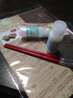 ラッピング用紙にデコパージュ液。