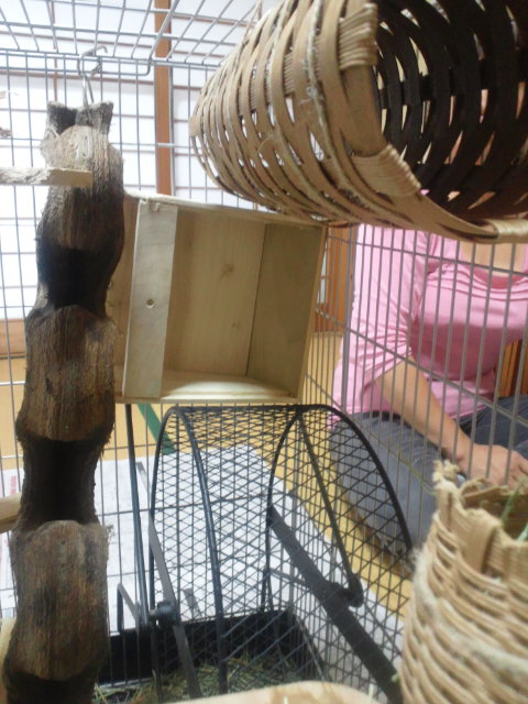 せまいケージを少しでも広く使えるように、空中回廊を作ってみました。