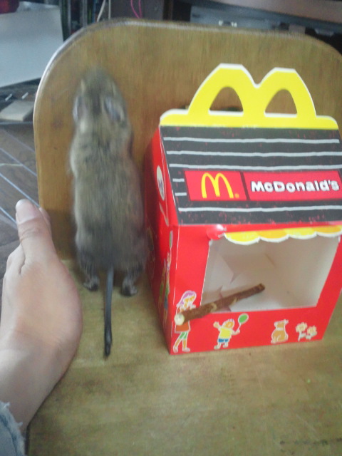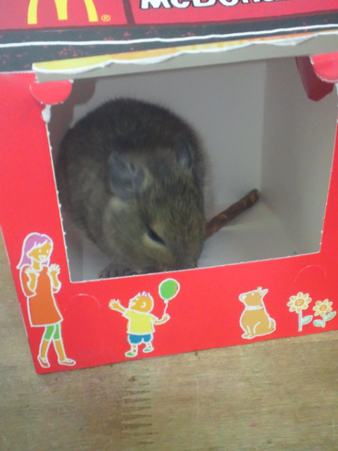 ハッピーセットを買った時に貰った箱、デグーには、ちょうど良いサイズ。