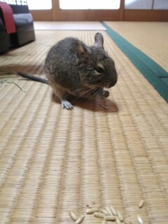 もみじが投げたデグーのご飯を摘まみ食い(笑)