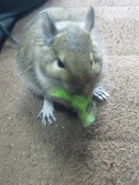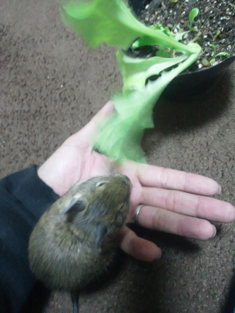 が、面倒になったのか引きちぎって食べ出すデグーのもみじ!