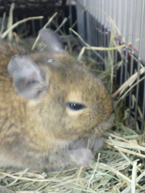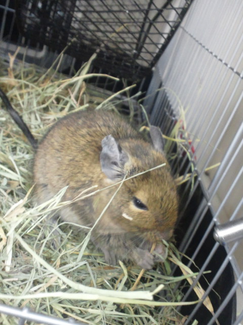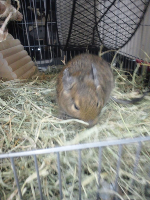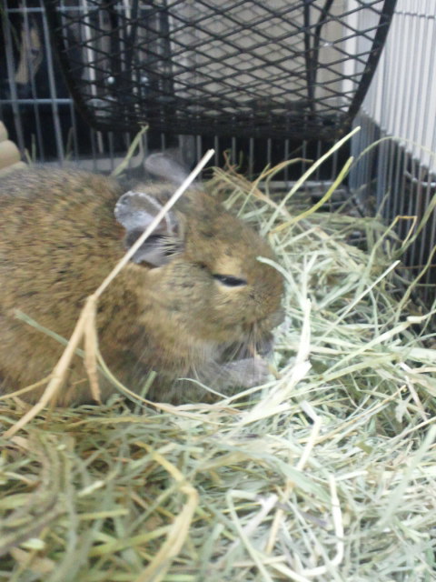 敷き藁のバミューダを補充したとたん、大喜びのデグーもみじ!