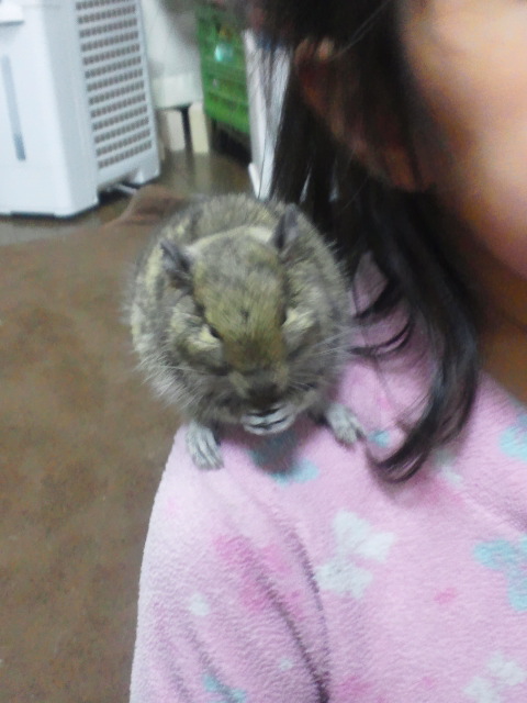 ご飯食べてると、何処でも落ち着くデグーのもみじさん!