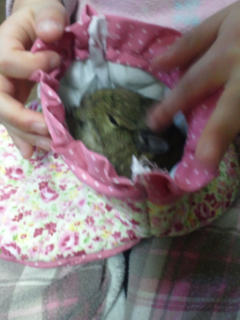実は、デグーのもみじさん、子ども達の手の上では落ち着きません。