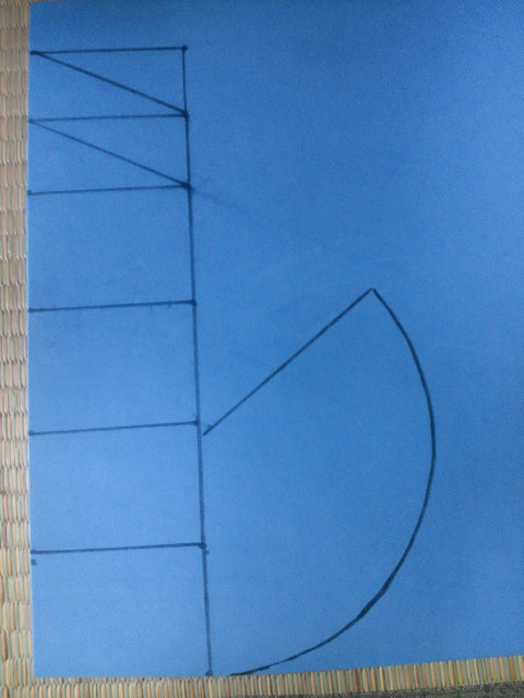 コンパスを使って半径dの円を書き、そこから角度eの扇形を作ります。