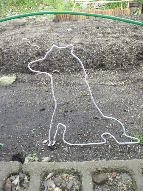めげずに、畑に新作ワイヤーアートの「ダレ柴」を設置。