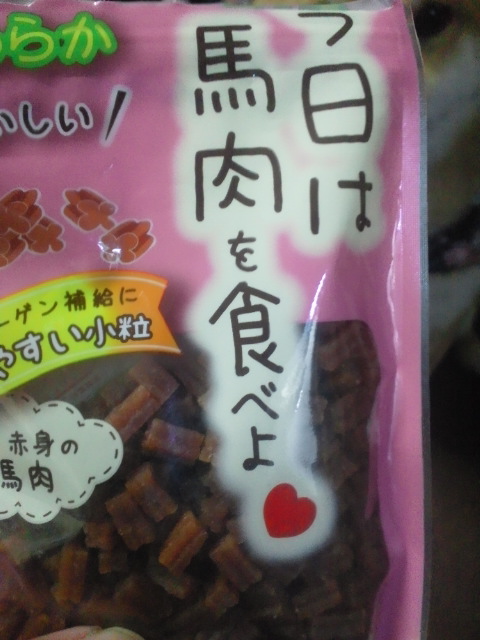 馬肉じゃ無くてもオヤツなら何でも良いんでしょうけど、やっぱり肉なんでしょうね。