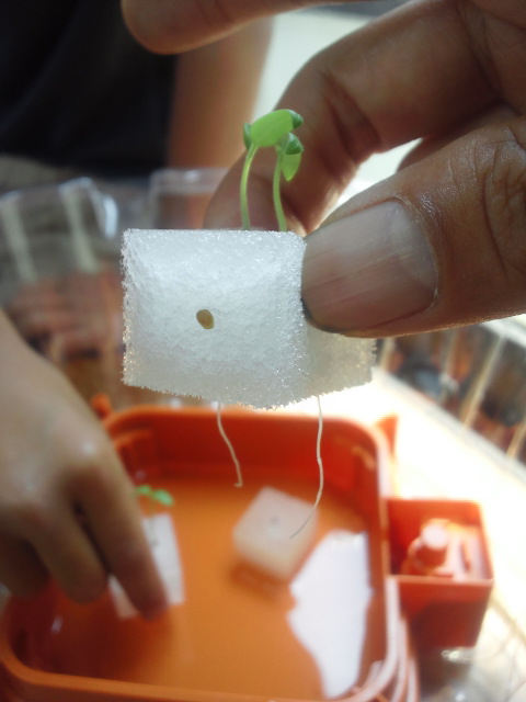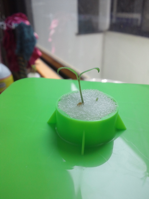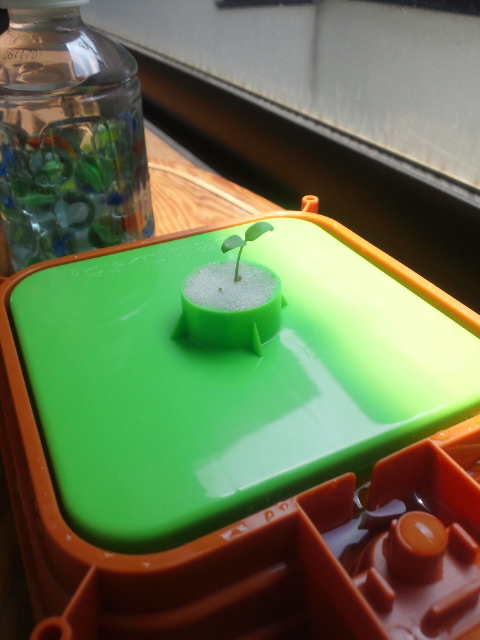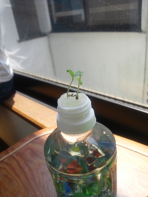 もう一方のスポンジも捨てるのはもったいないし、植え付けたのが失敗した時のためにペットボトルへ植え付けました。