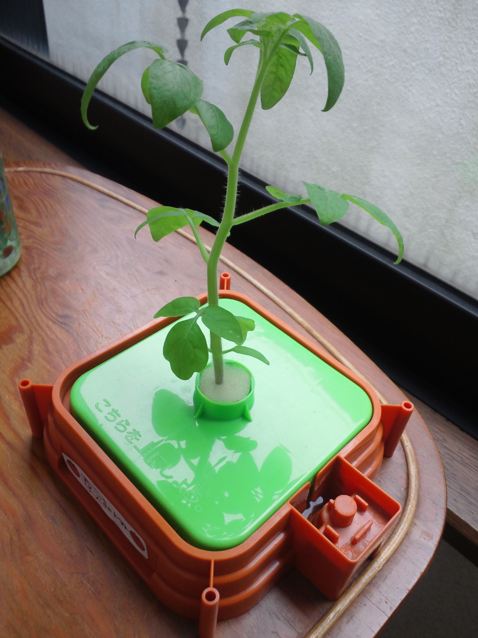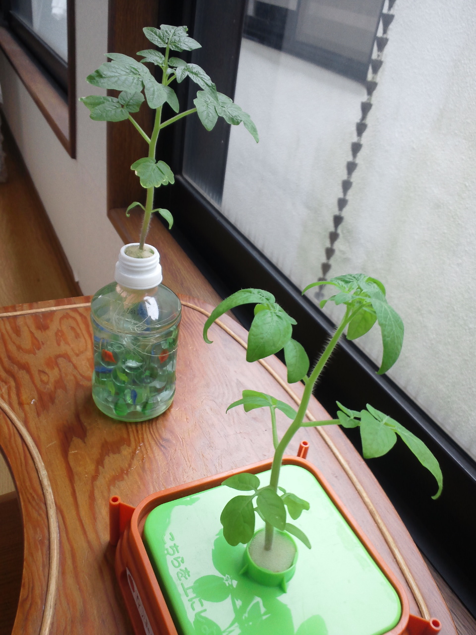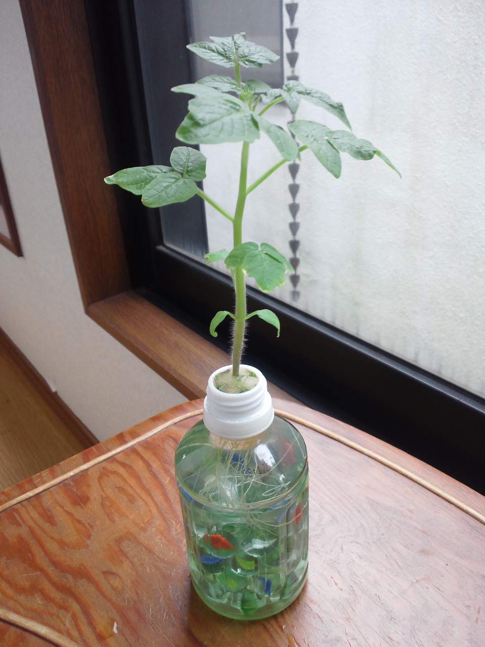 前回と前々回には、こどもチャレンジ 2年生のトマト栽培キットに付属していた栄養水を足しました。