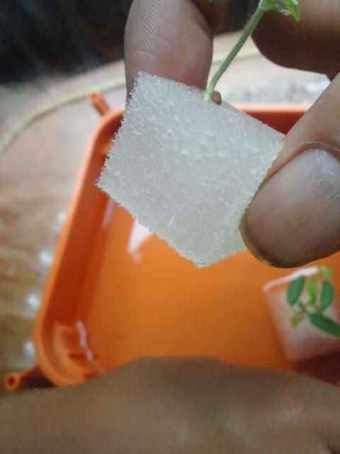見えにくいですが、写真をクリックして拡大すると、ひょろっとした白い根がかろうじて見えますf^_^;