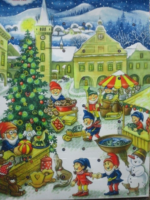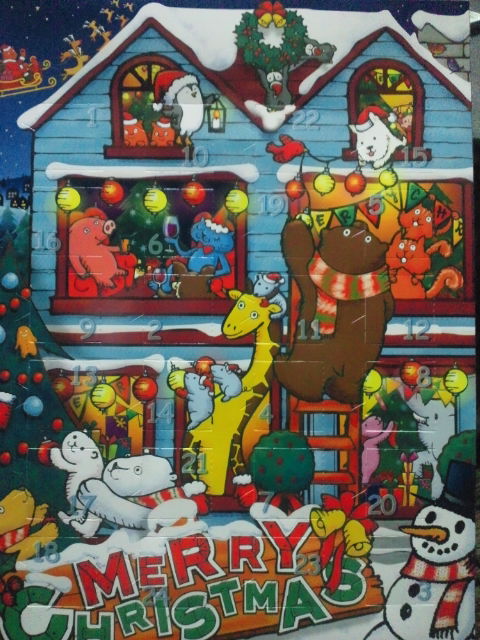アドベントカレンダーってのは、12月24日のクリスマスまで、毎日開けて楽しむカレンダーです。