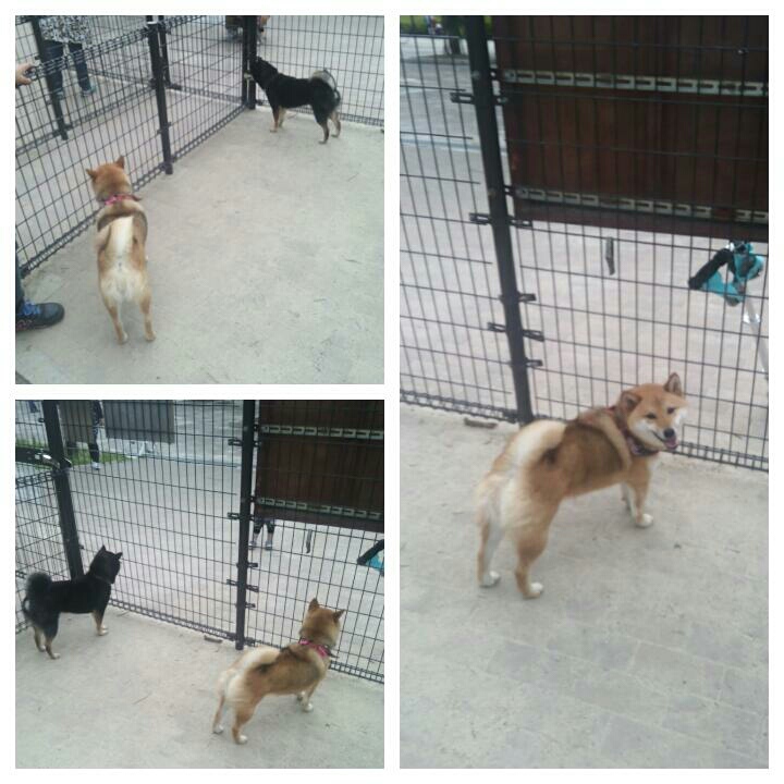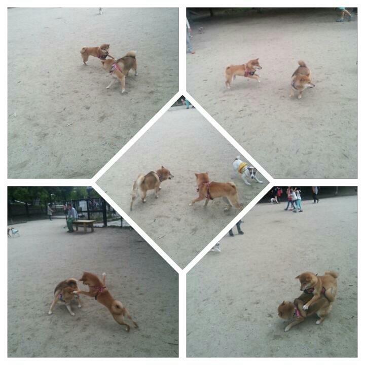 1歳柴女のクーちゃんに、あっさり追い込まれた3歳柴女のさくらさんf^_^;