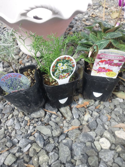 ハーブのラベンダーとジャーマンカモミール、そして何故かシクラメン。