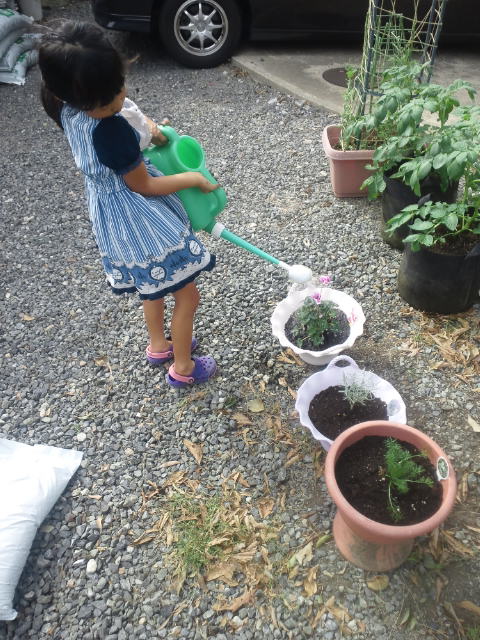 植え付けた後は、じょうろでタップリ水やりしました。
