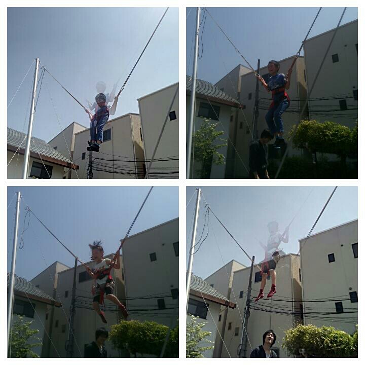 バンジージャンプのようなゴムを補助にトランポリンするんです。
