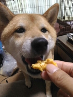 さくらちゃん、おいしそうな卵をもらえてよかったね~ 桜太も最近初めてゆで卵を食べましたが、とても気に入ったようでした