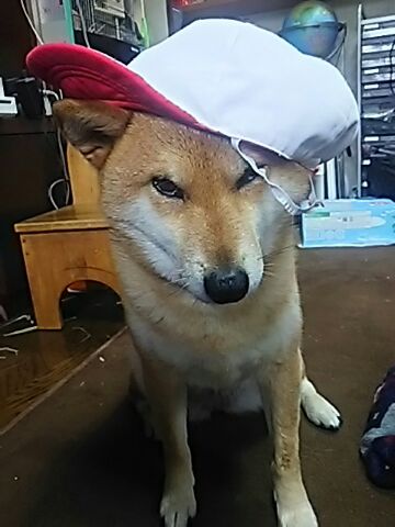 帽子を被せられたさくらちゃん…凄く嫌そう~。