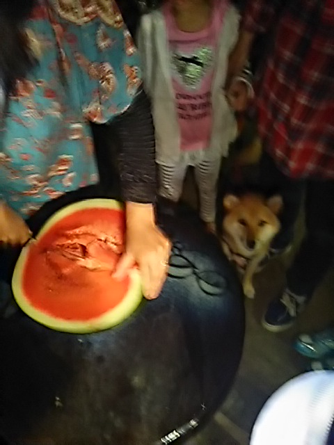 スイカ食べない柴犬さくらも、空気に釣られて参加してました(笑)
