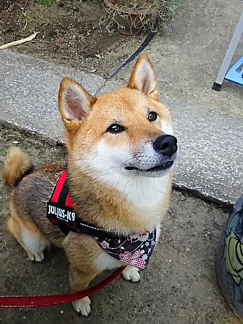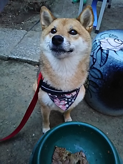 肉が焼ける度に、クレクレ光線発射しまくりの柴犬さくら