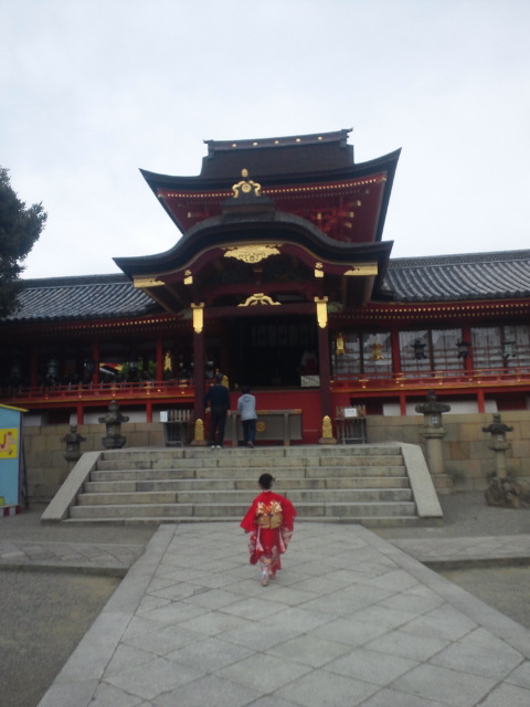着物を着て、お詣りに行きます。