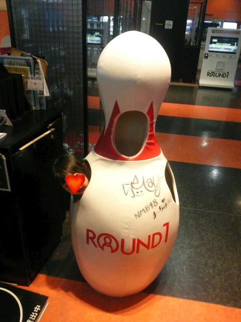 被り物のピンを発見した娘は、いきなりボーリングピンにへ~んし~ん( ̄∀ ̄)