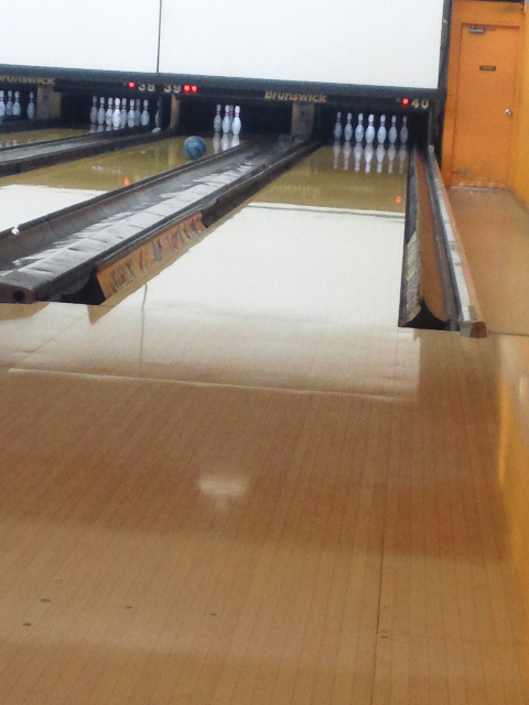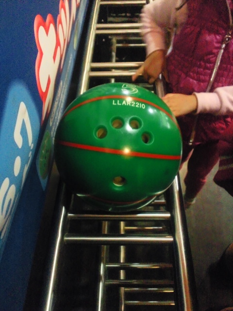 穴に娘が指を入れると、手の平にボールを乗せて、レーン際まで行き投げるの繰り返しでした。