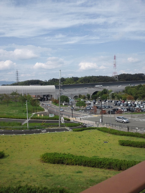 駐車場と高速のすぐ脇に広がる広大な芝生!