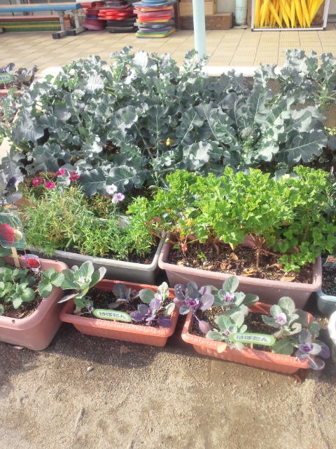 幼稚園でたまねぎやブロッコリ-作りはめずらしいですね。