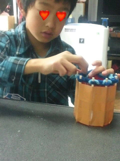 すると、息子まで、ばーちゃんの誕生日プレゼントにマフラーを作ると言い出しました。