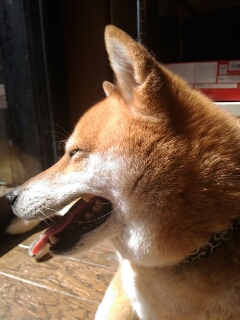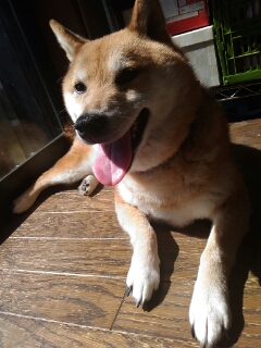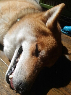 日向でノンビリしている毛むくじゃらも暑いらしい。