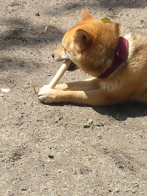 柴犬さくらが、カジカジしているのは「竹」