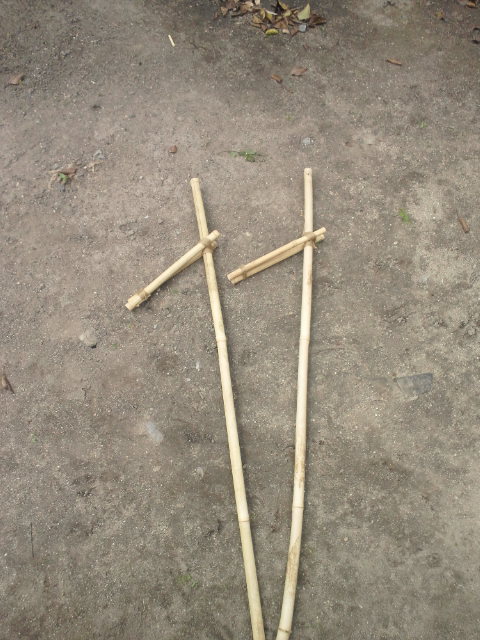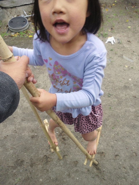 であり合わせの竹で、文字通り竹馬を作る事に…