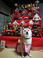 お雛様に付いてたちゃんちゃんこ、着れなくなった娘に代わって、さくらがおめかし(笑)