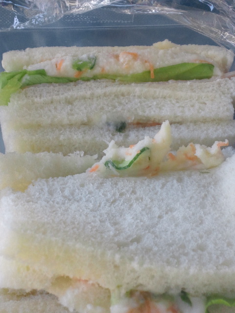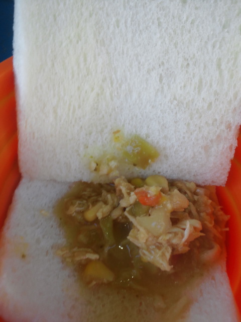 パンに、試供品のお魚スープを挟んだサンドイッチです。