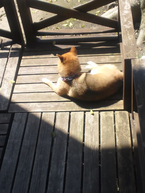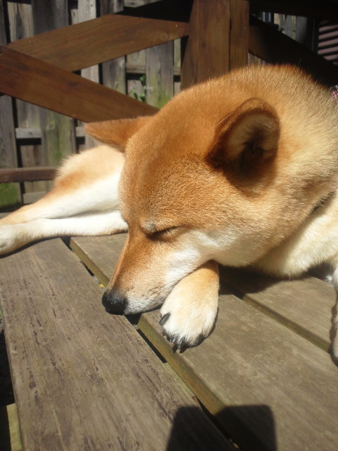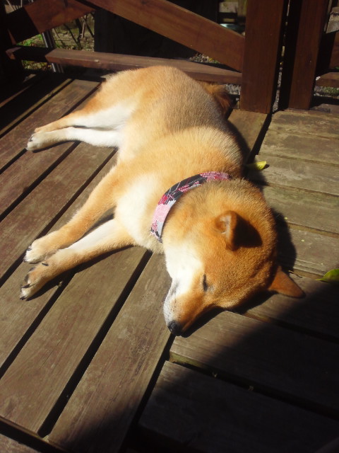 日差しを全身に受けて、幸せいっぱいなお昼寝ですね(笑)