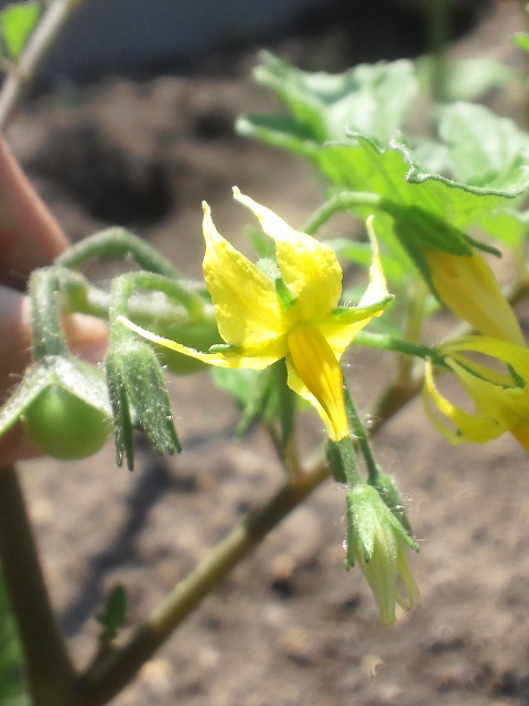 沢山お日様浴びて、早く、真っ赤なトマトになってくれないかな~。