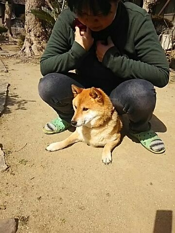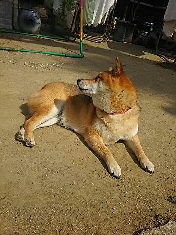作業している間、ノンビリ日向ぼっこしていた柴犬さくら。