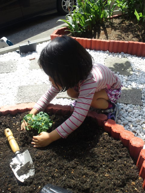 花壇に一つ一つ植え付けて行きます。
