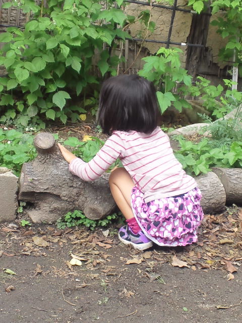 この後、娘はウッドデッキ前のベリー畑へ