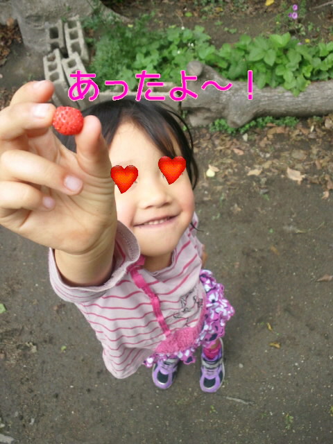 すでに、雑草になりかけてるワイルドストロベリーをかき分けてました。