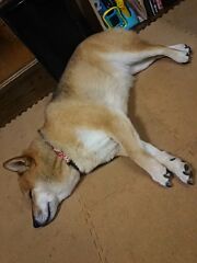 そんな収穫から戻ると、足元に逃げ込む柴犬さくら。