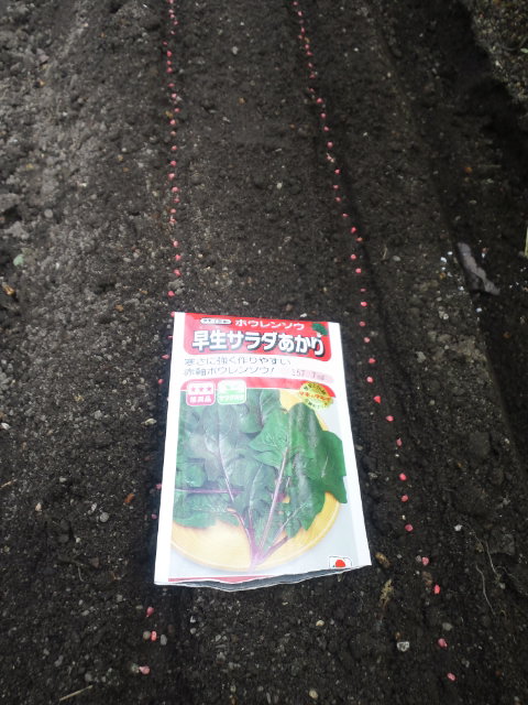 ほうれん草は筋蒔き。