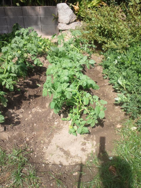 台風で倒れたジャガイモを、土寄せして復旧しました。