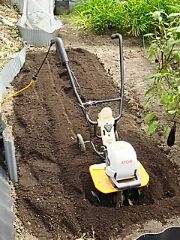 お天気の日が、やっと続いた火曜日、やっと耕耘機を使えました。