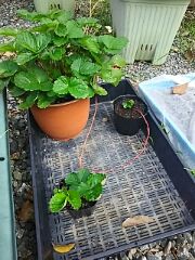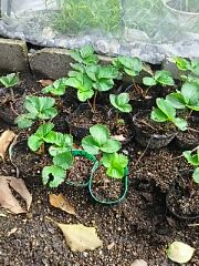 普通のイチゴのランナーは、ポットへの仮植えが順調